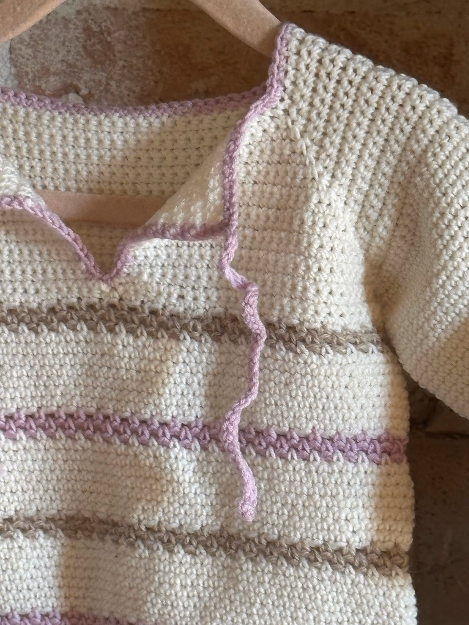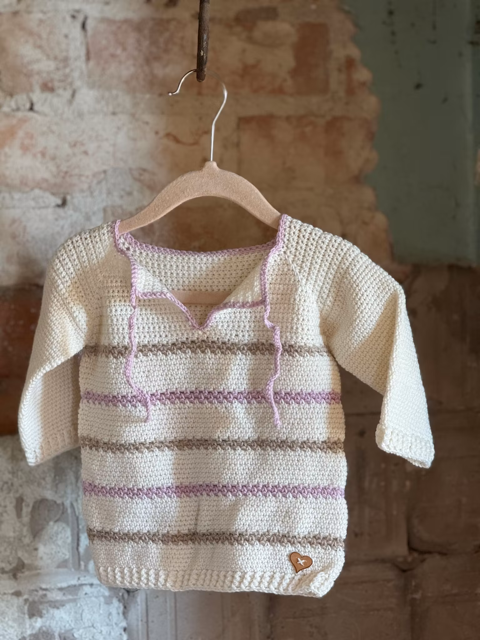 Fin Pippi tröja virkad i mjuk merinoull. Passar ca 9 månaders bebis