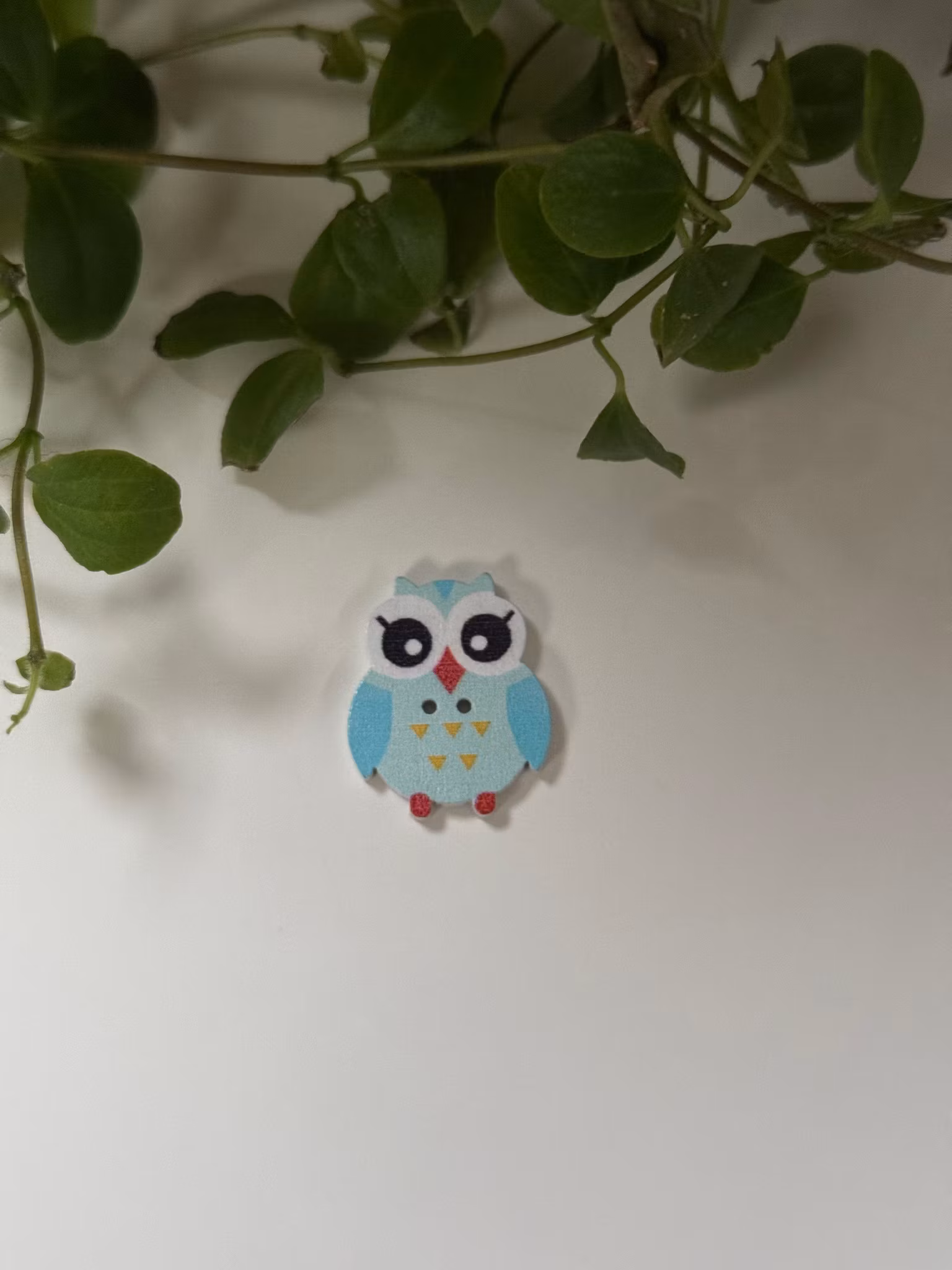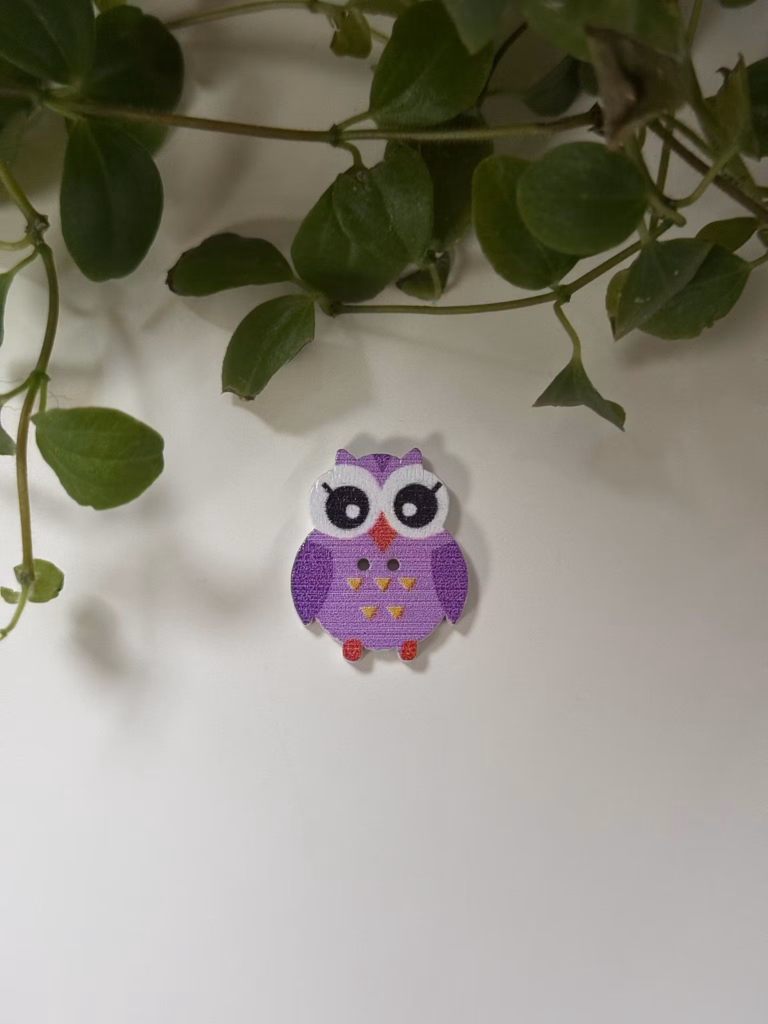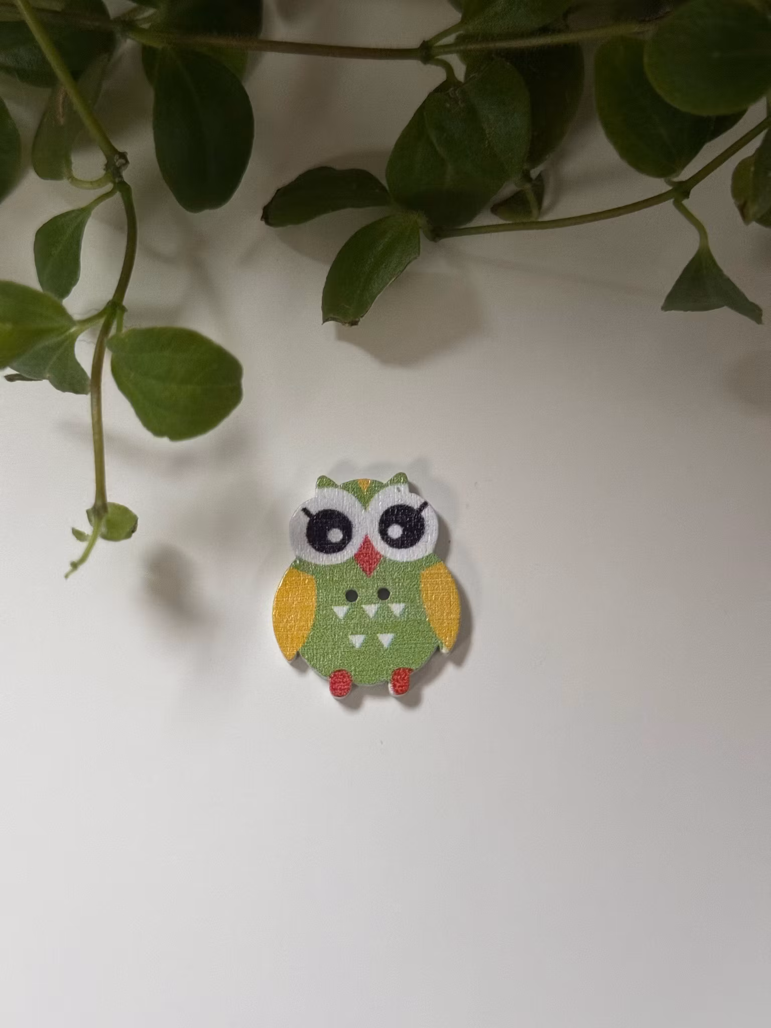 Söta träknappar med 2 hål. Målad framsida och träfärgad baksida. Mått ca 2,5 x 2cm.