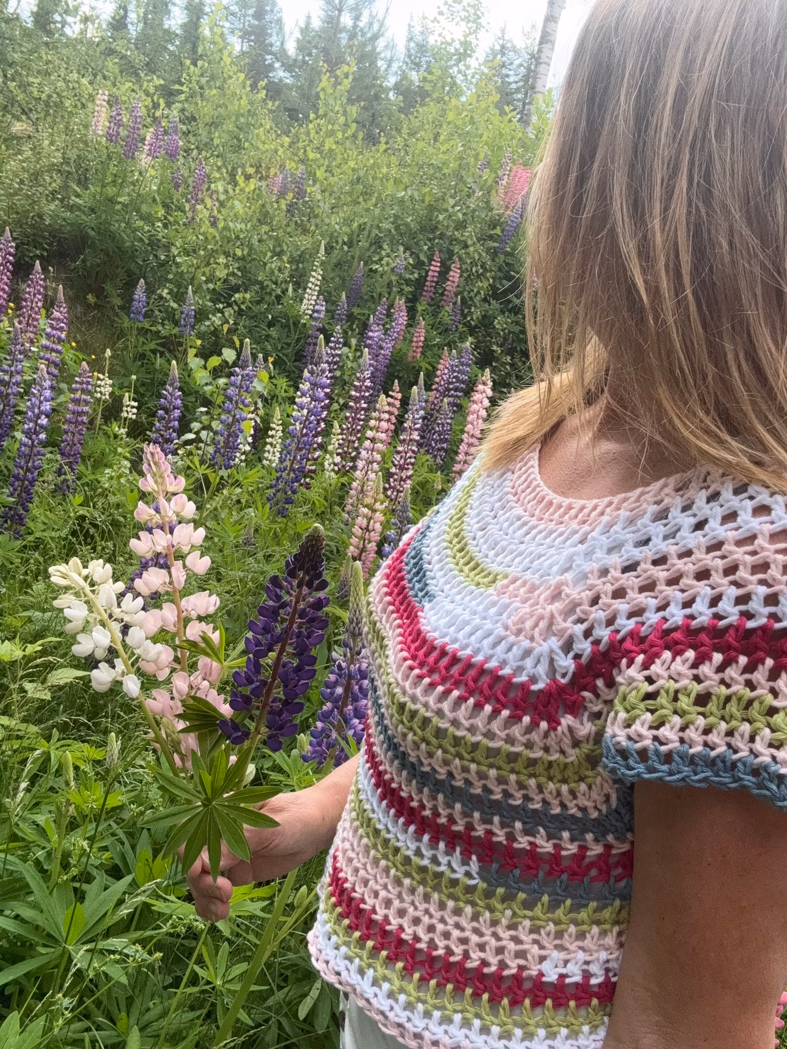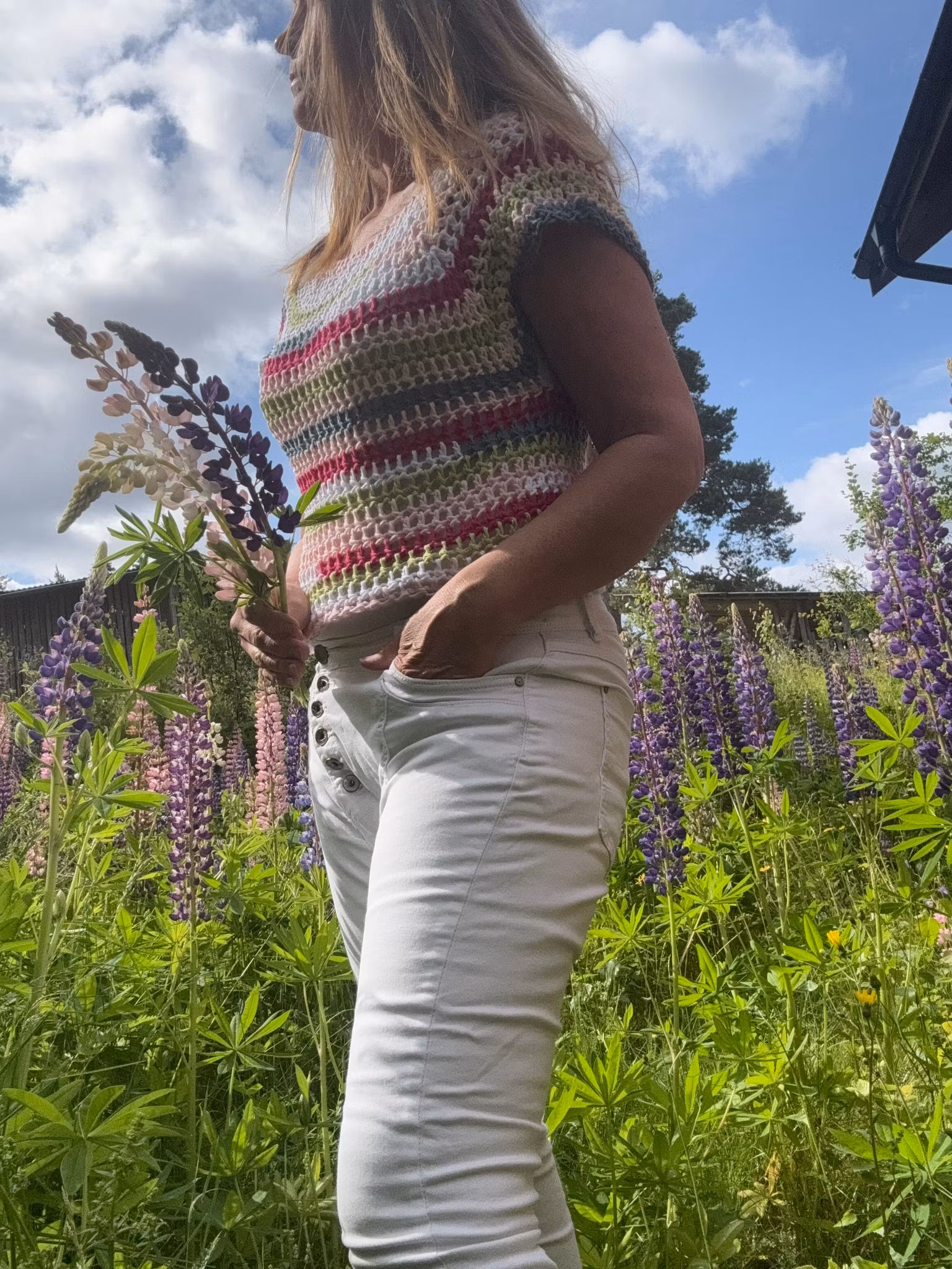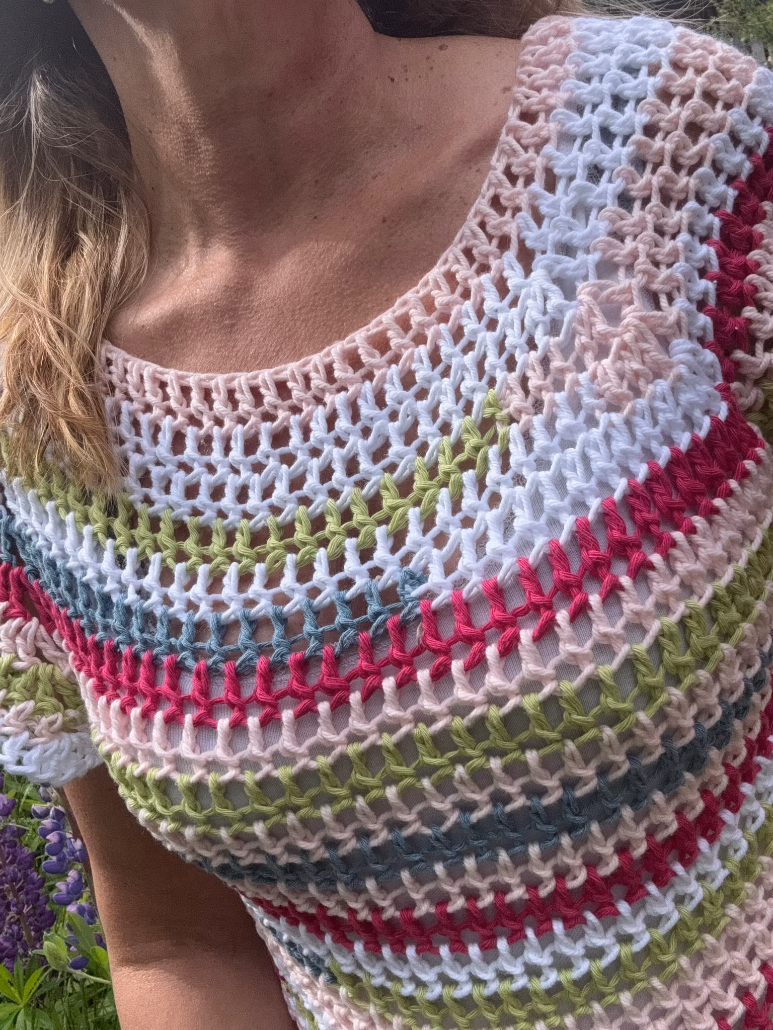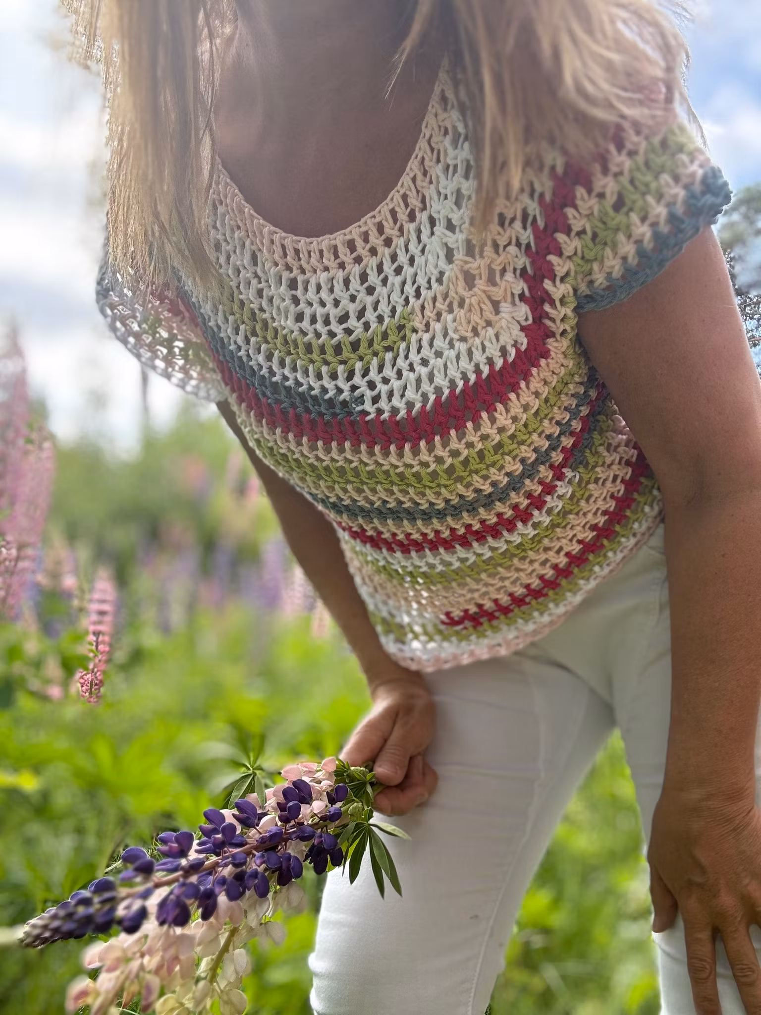 Virkad restgarns topp 100% bomull. Passar stl S/M kort i modellen