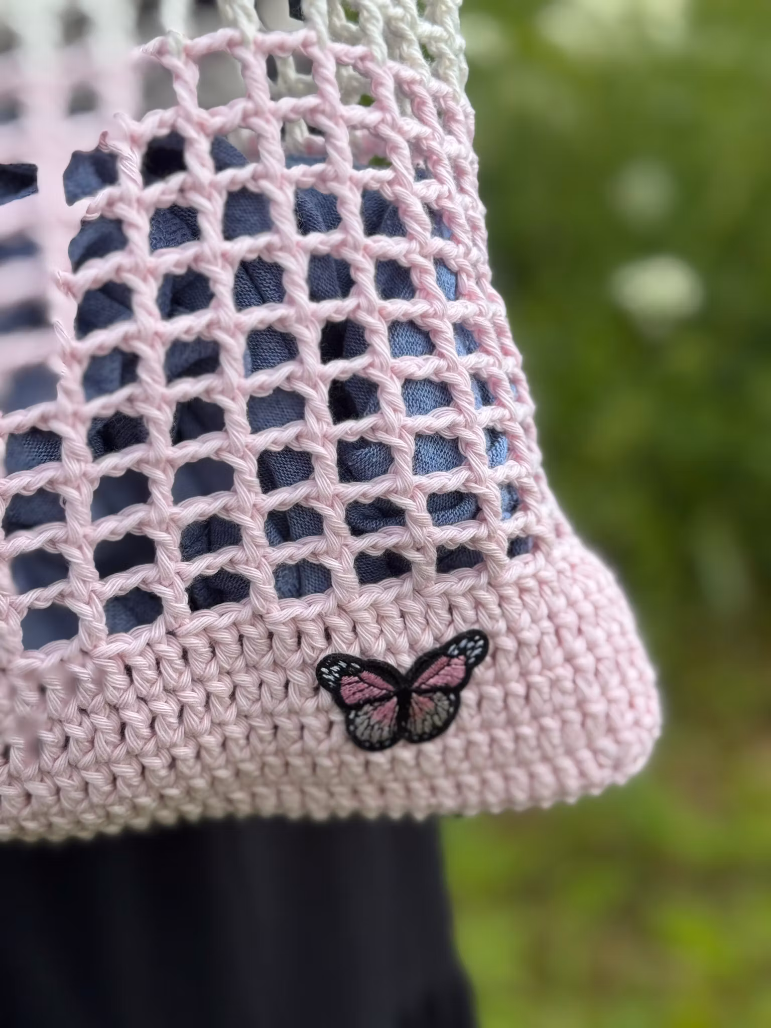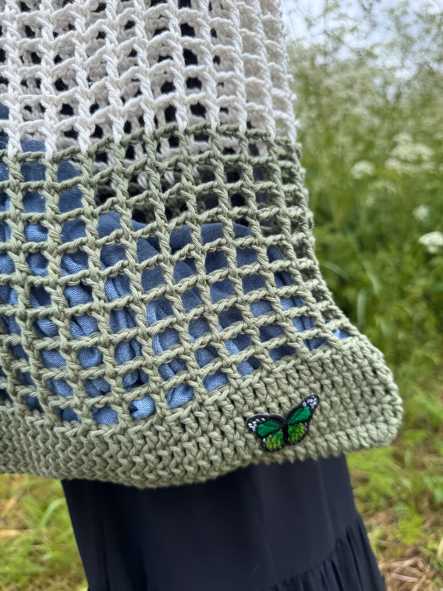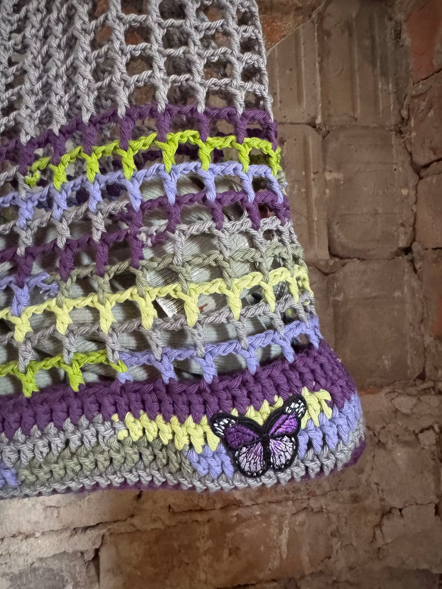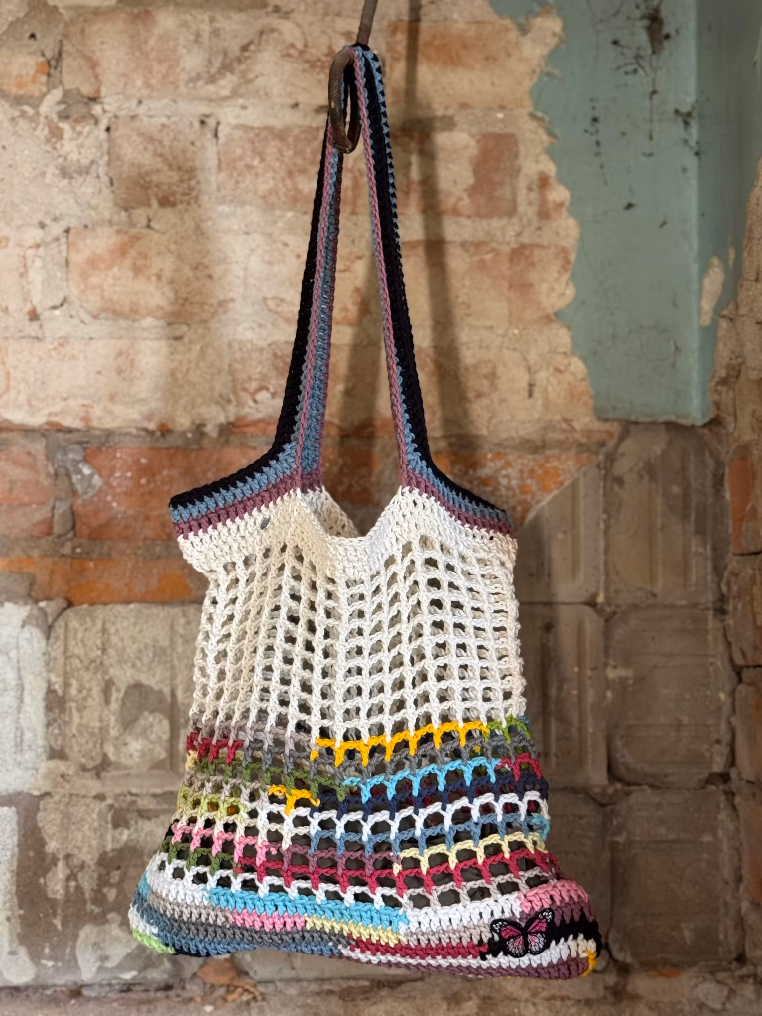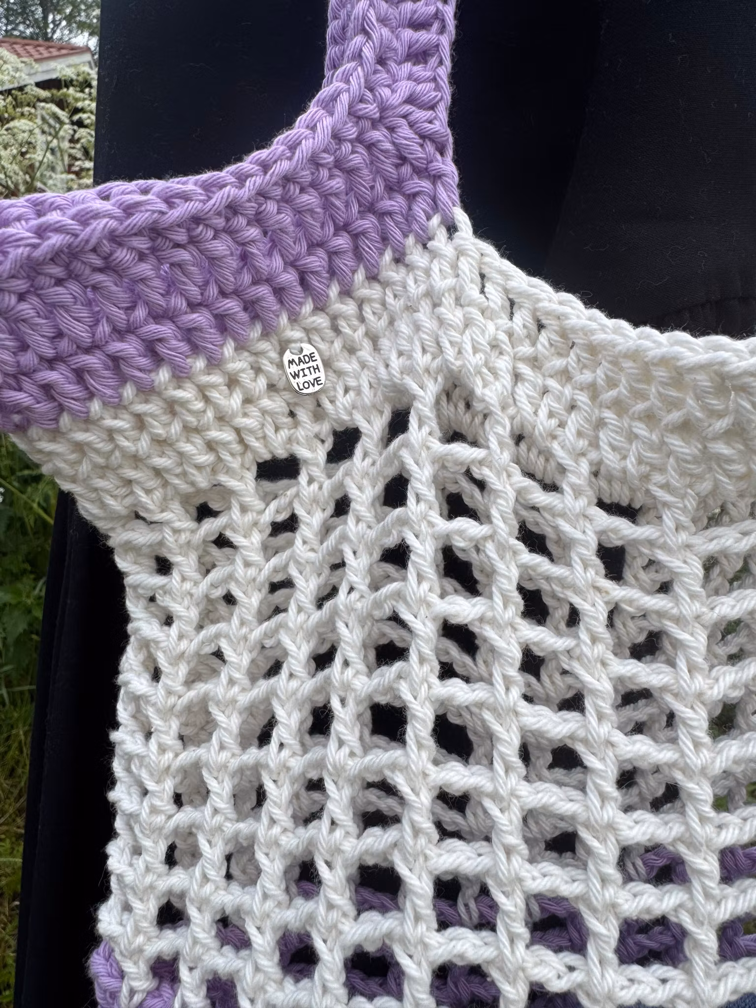 Virkad kasse/väska i 100% bomull ca 33x33cm utan axelrem