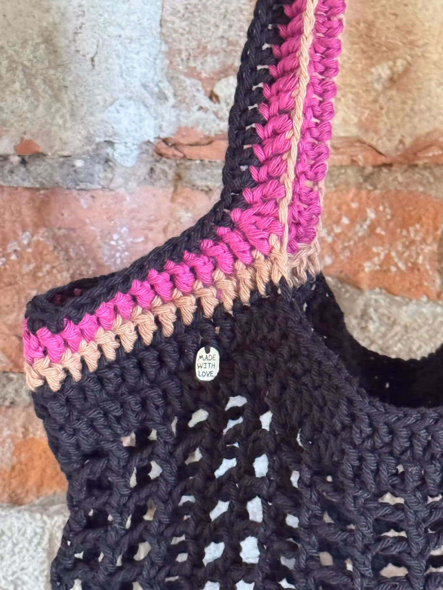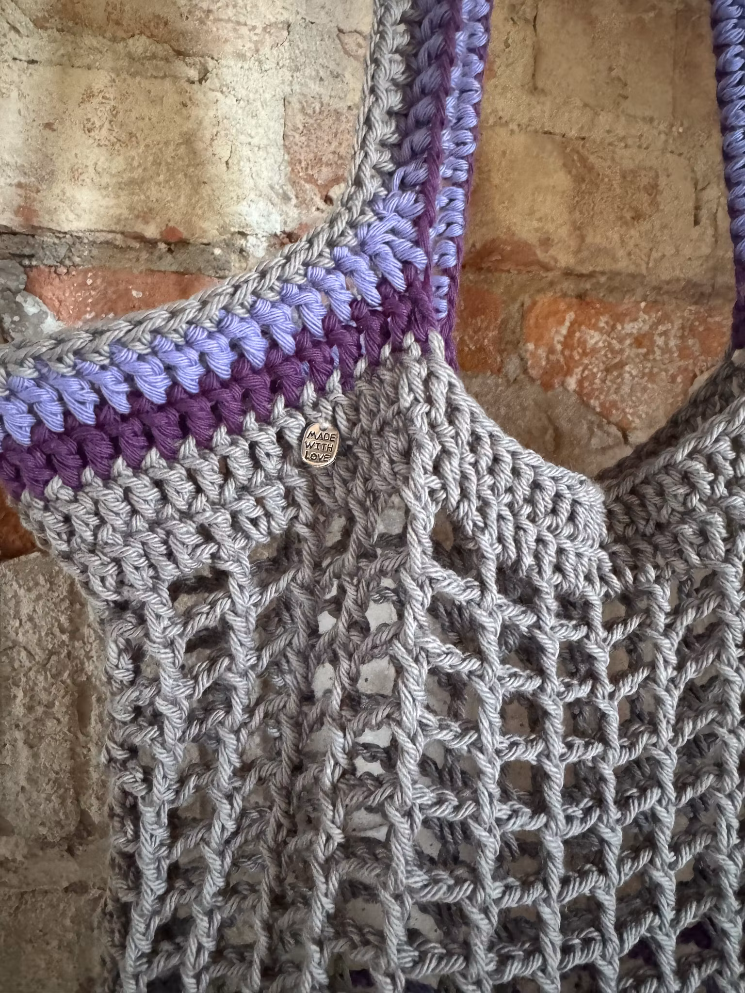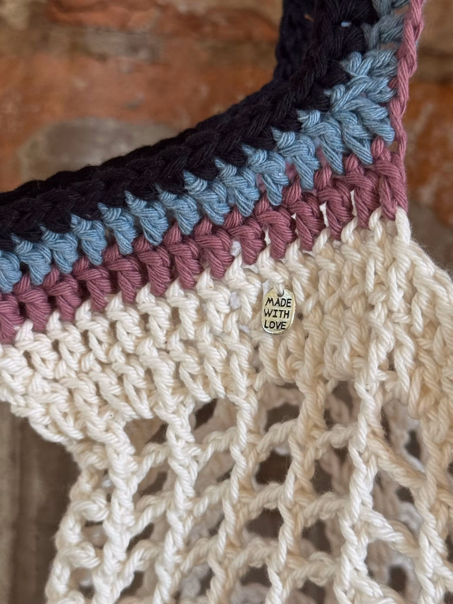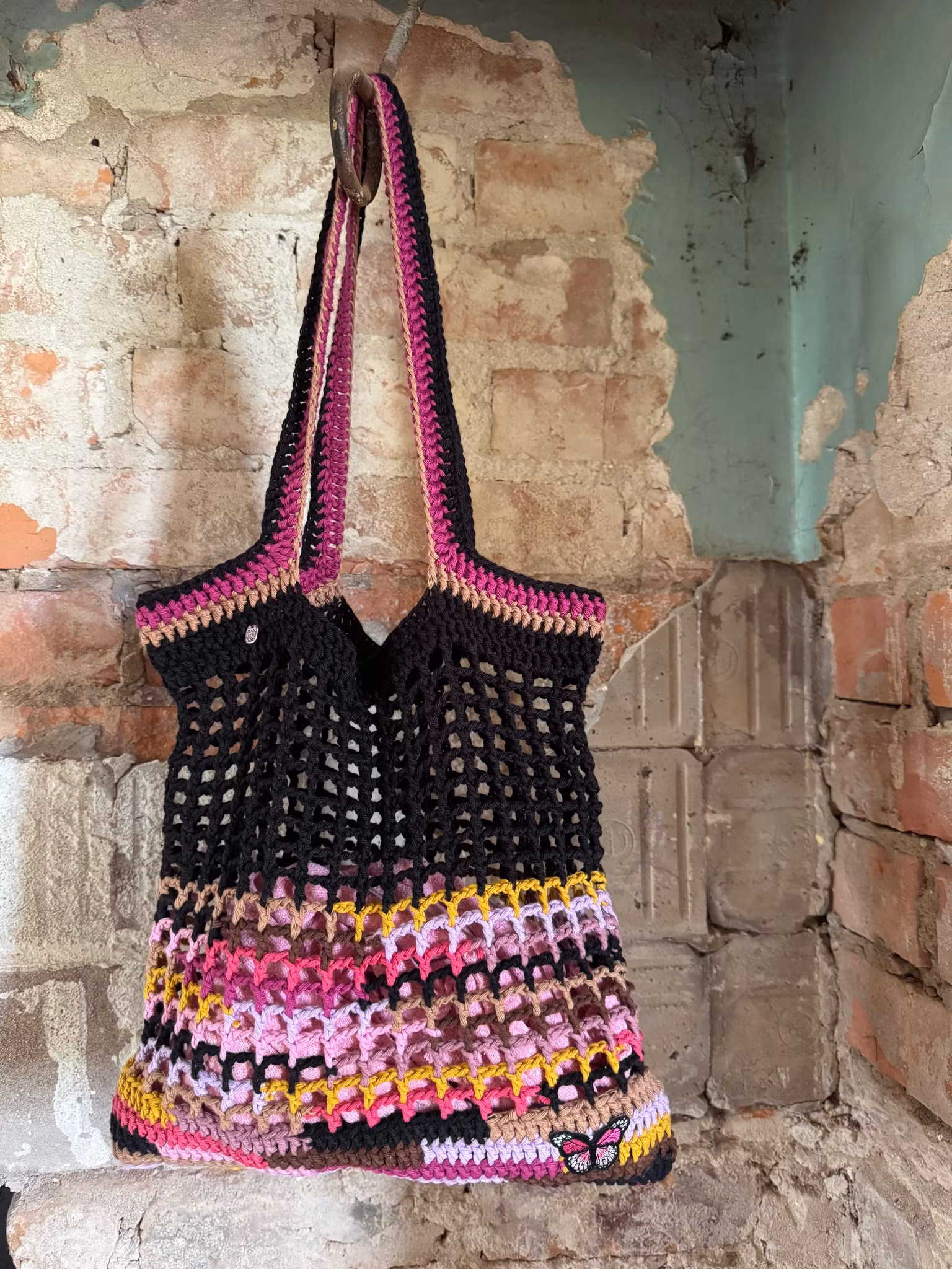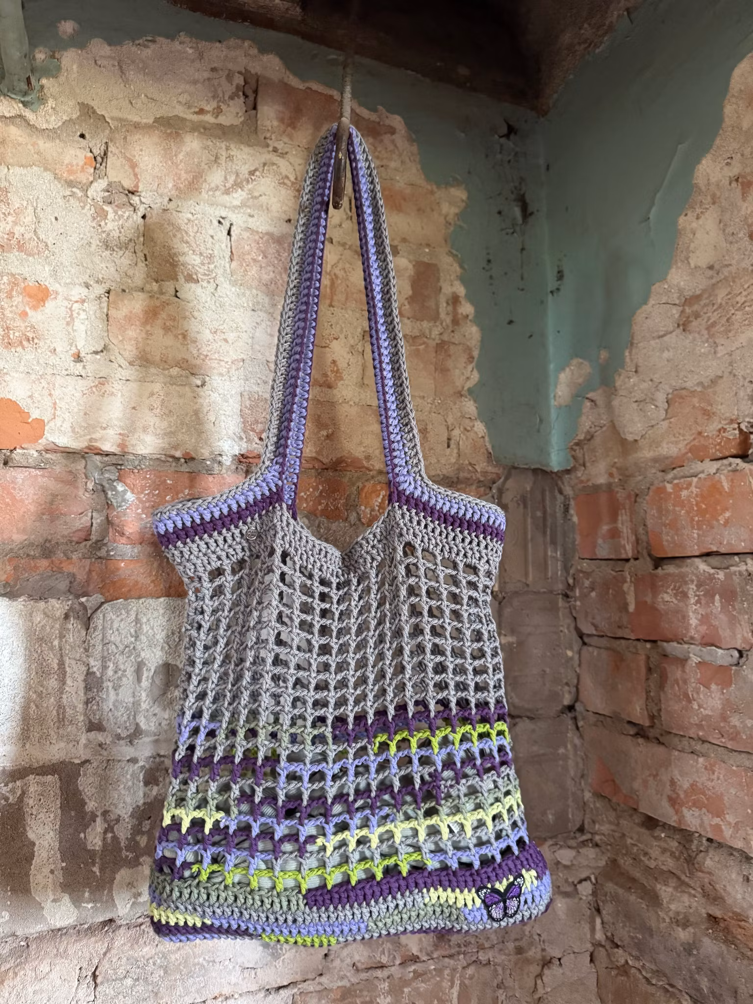 Virkad kasse/väska i 100% bomull ca 33x33cm utan axelrem
