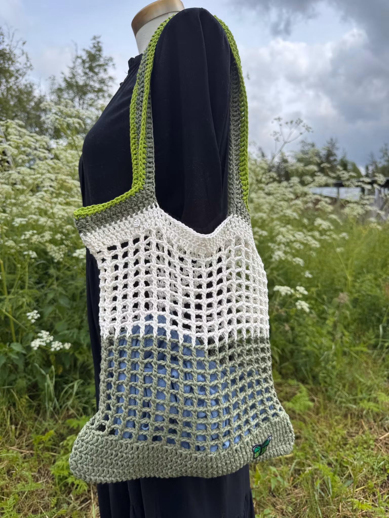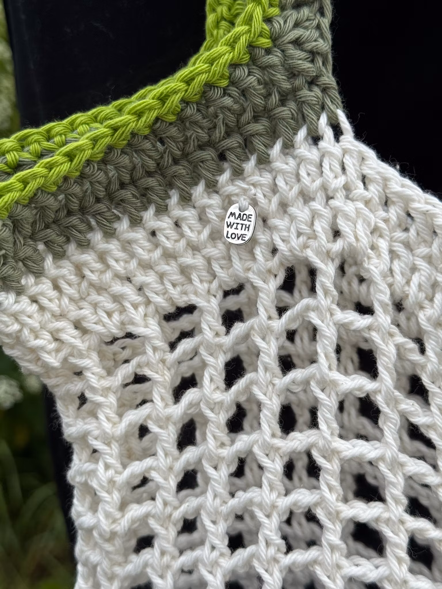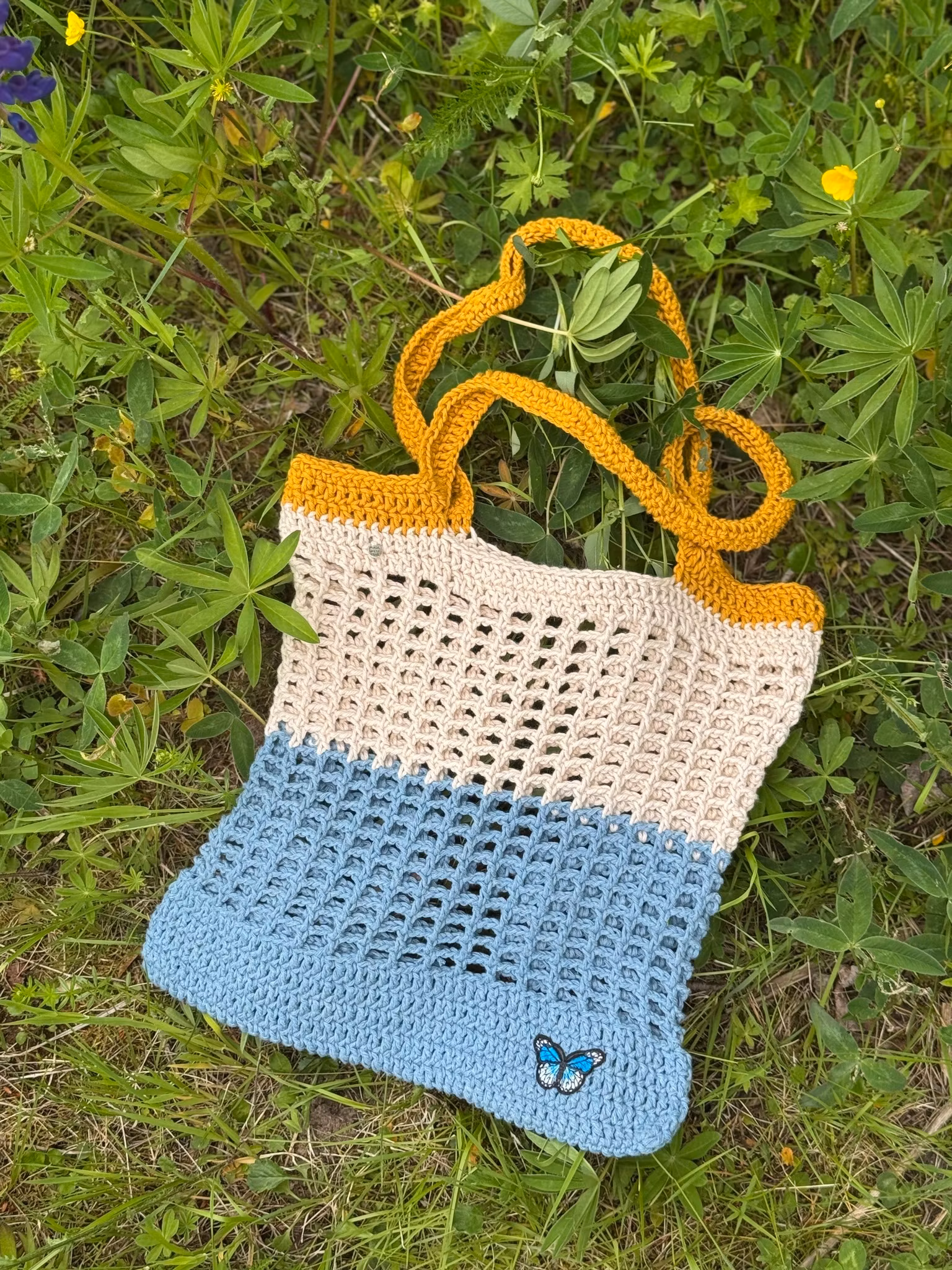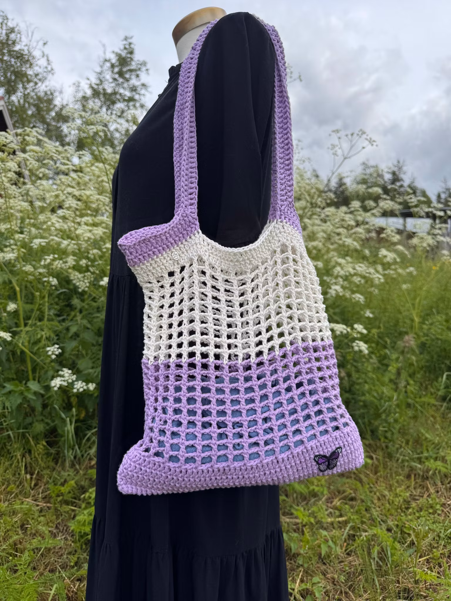 Virkad kasse/väska i 100% bomull ca 33x33cm utan axelrem