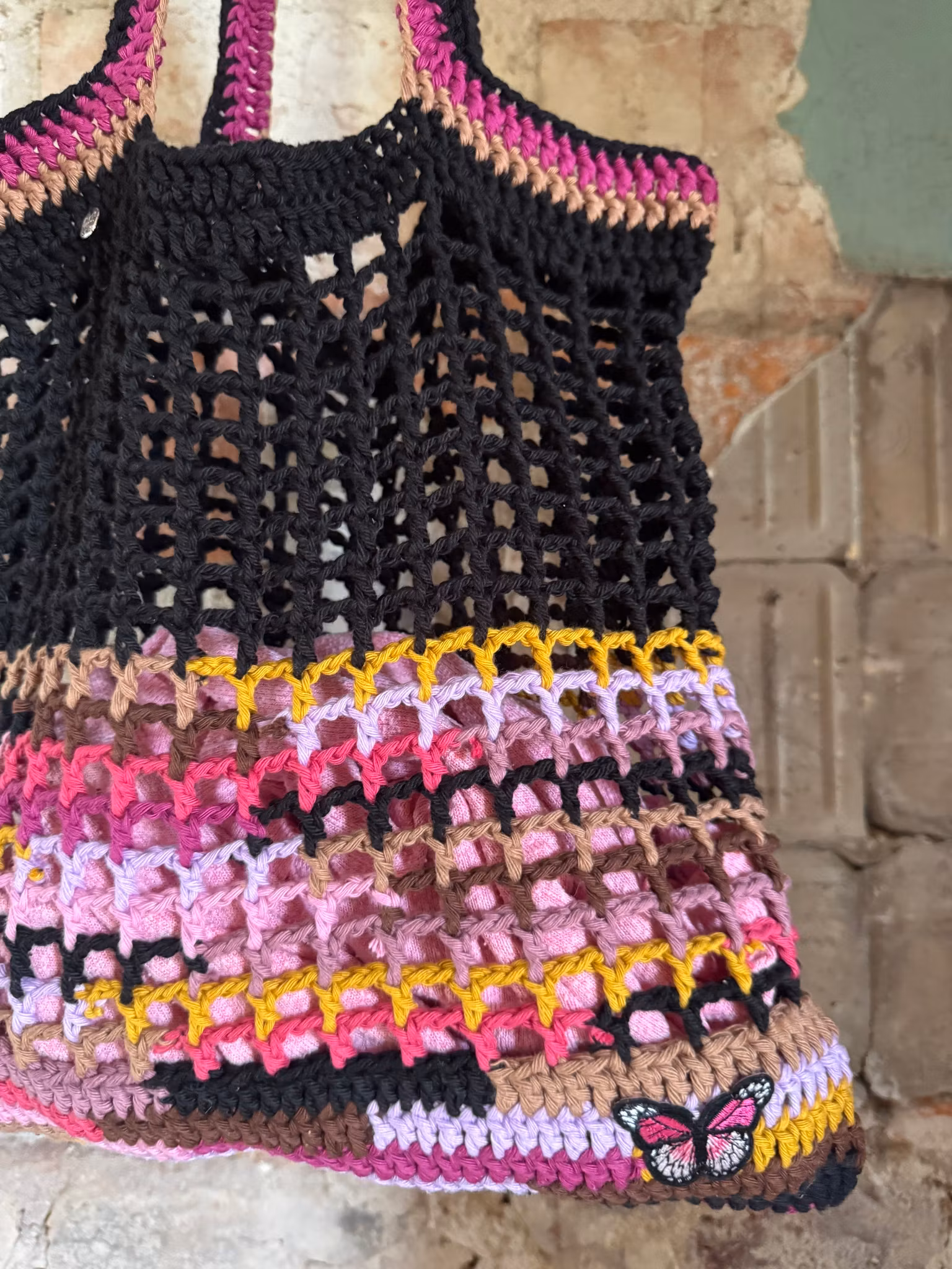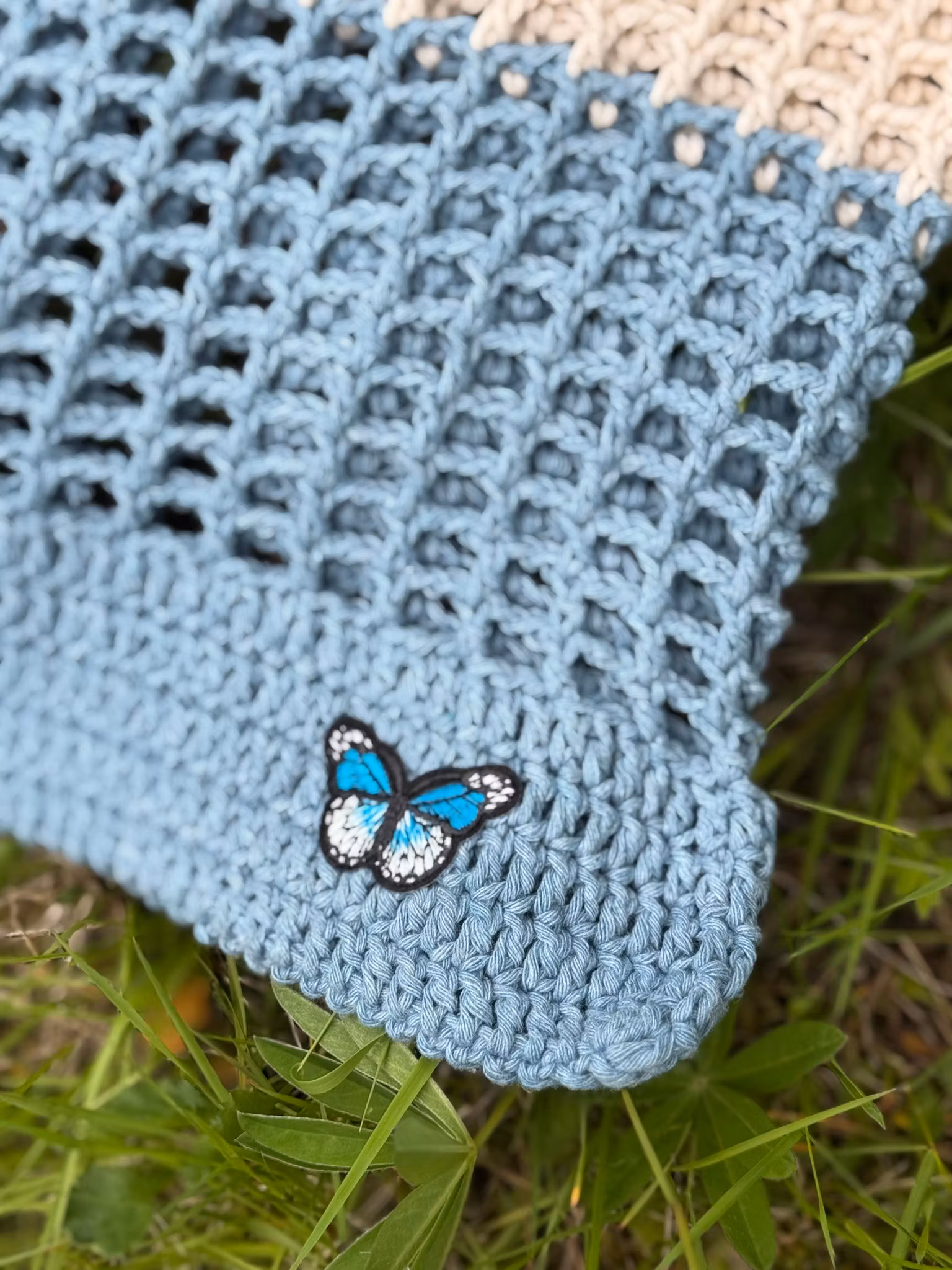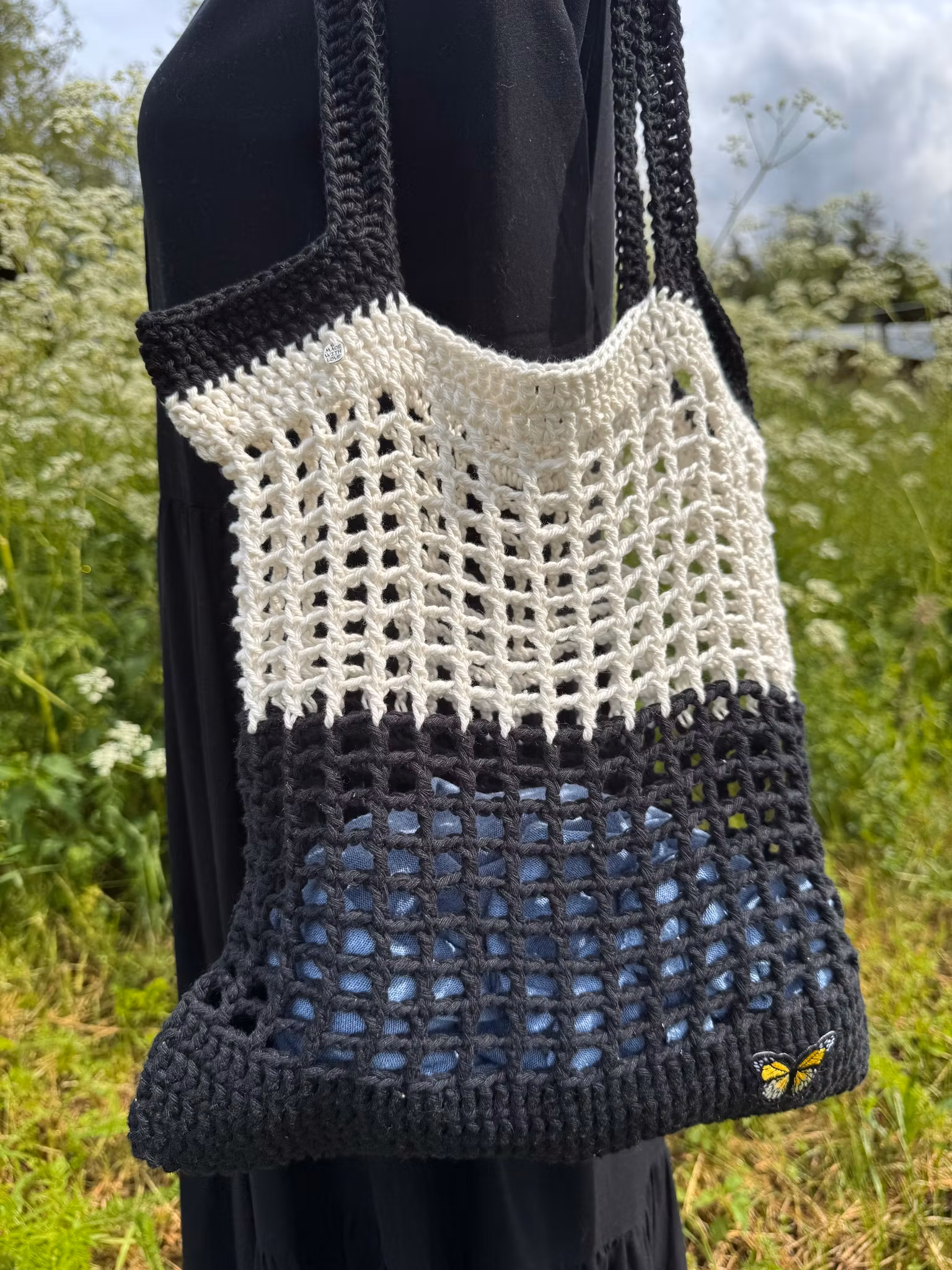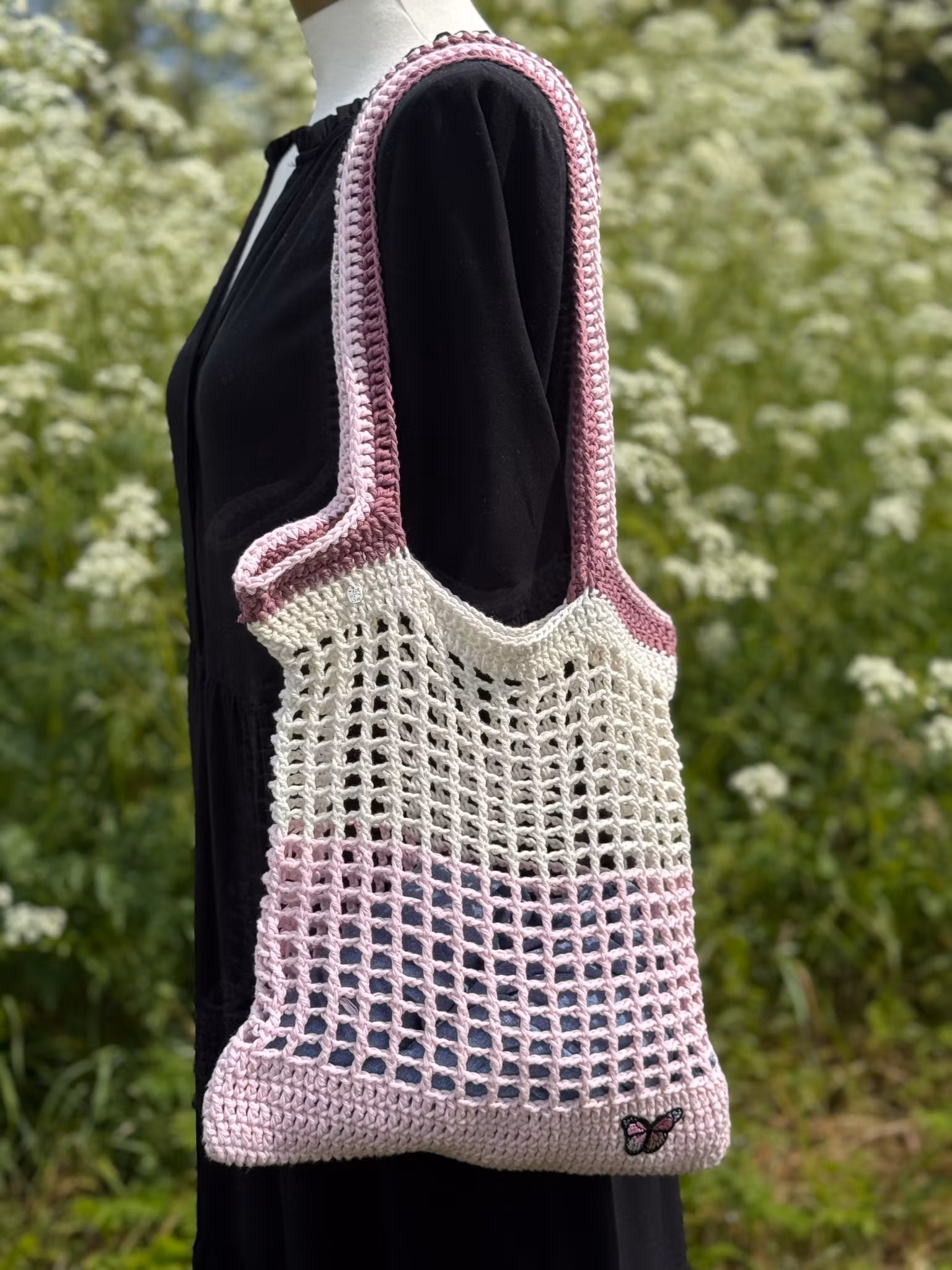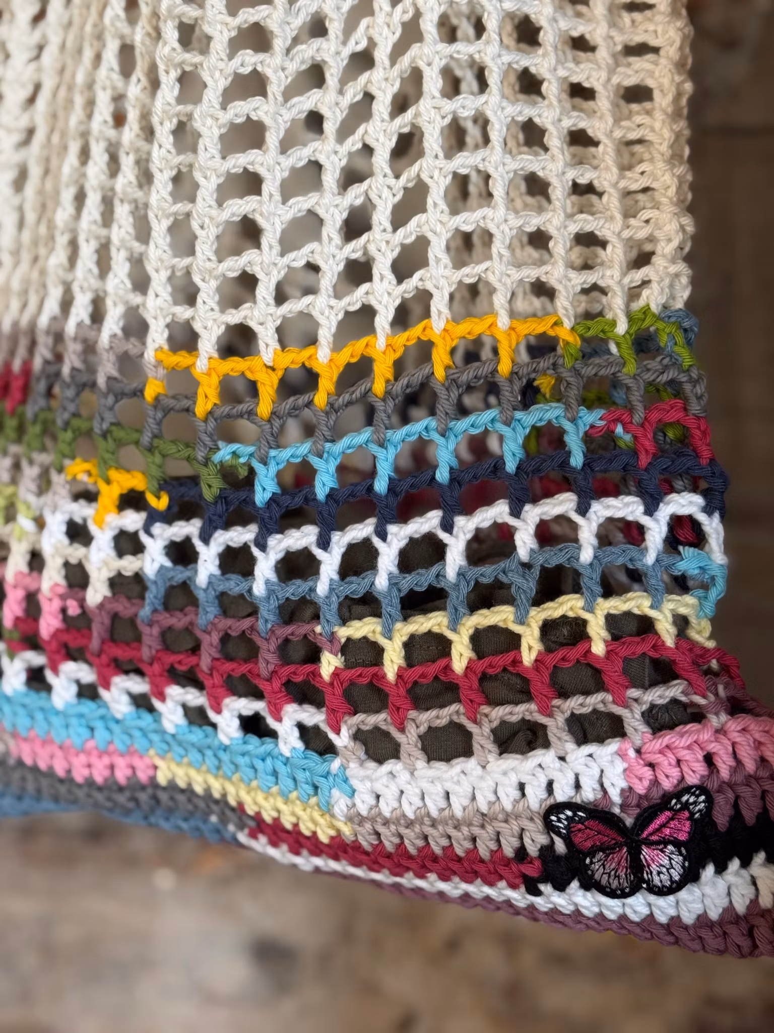 Virkad kasse/väska i 100% bomull ca 33x33cm utan axelrem