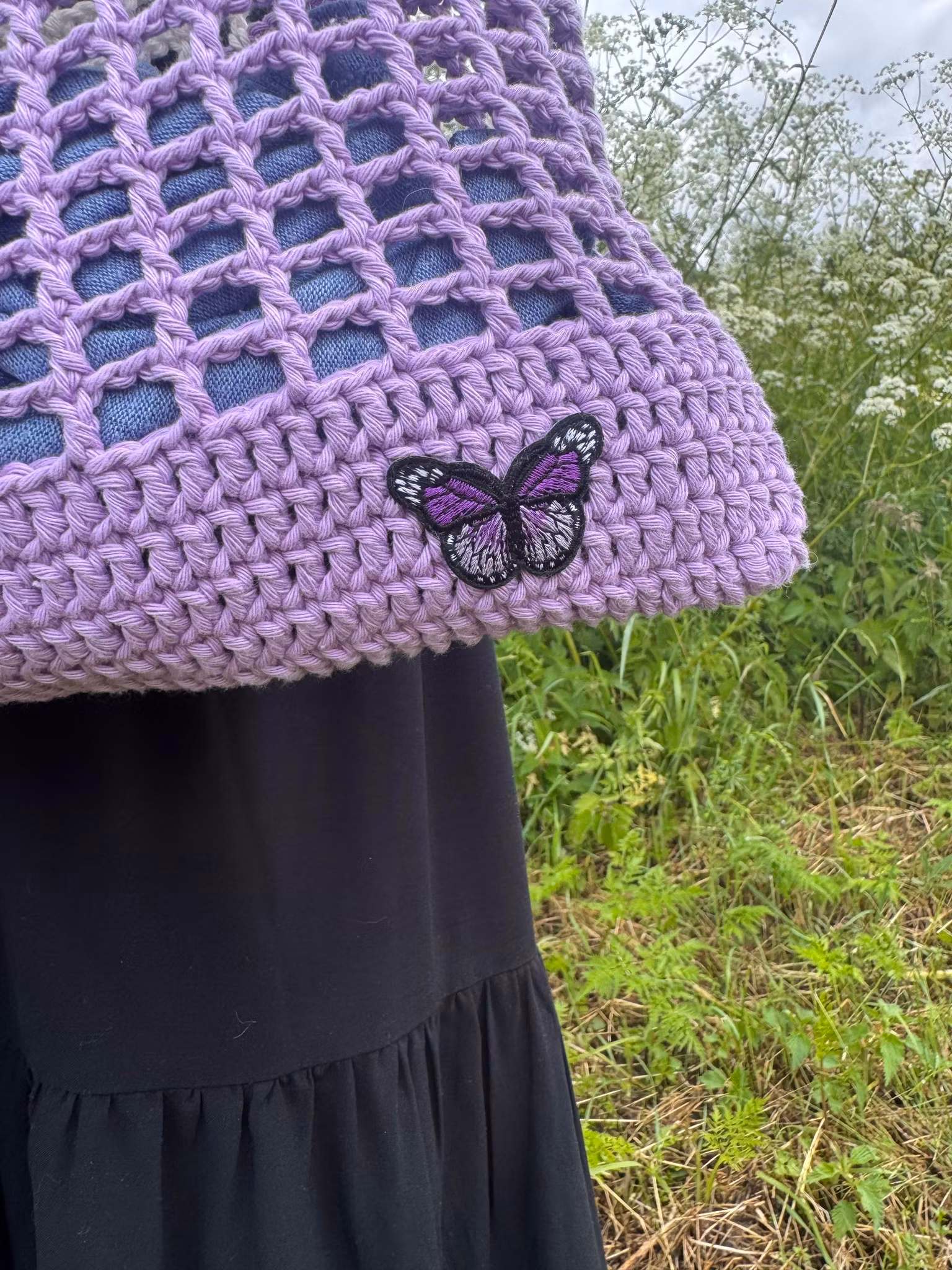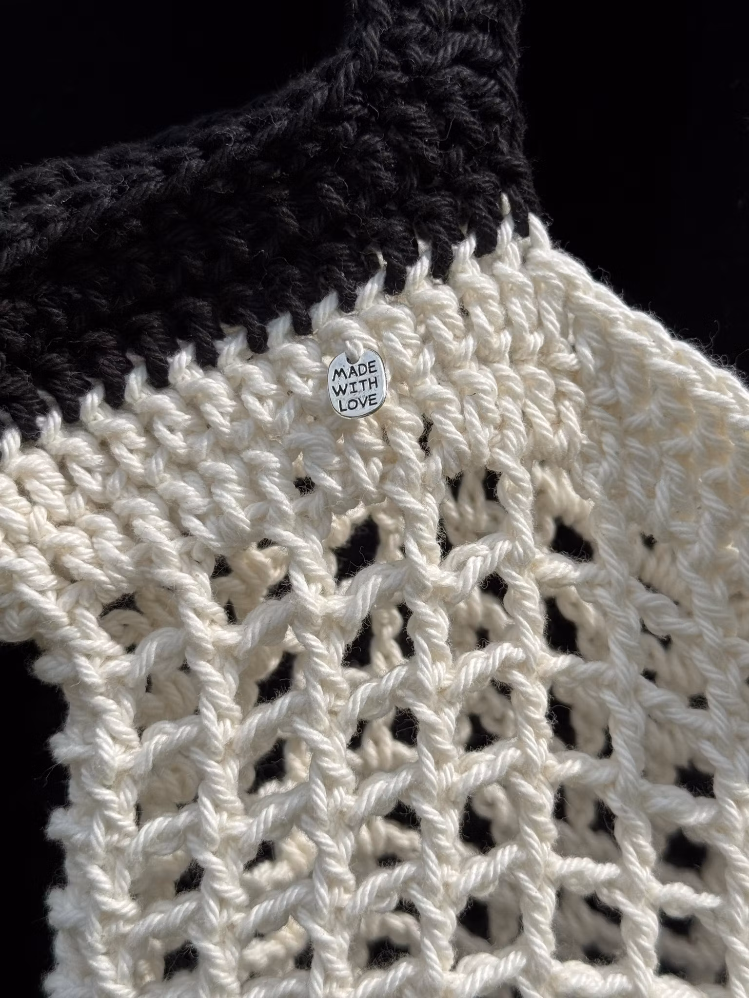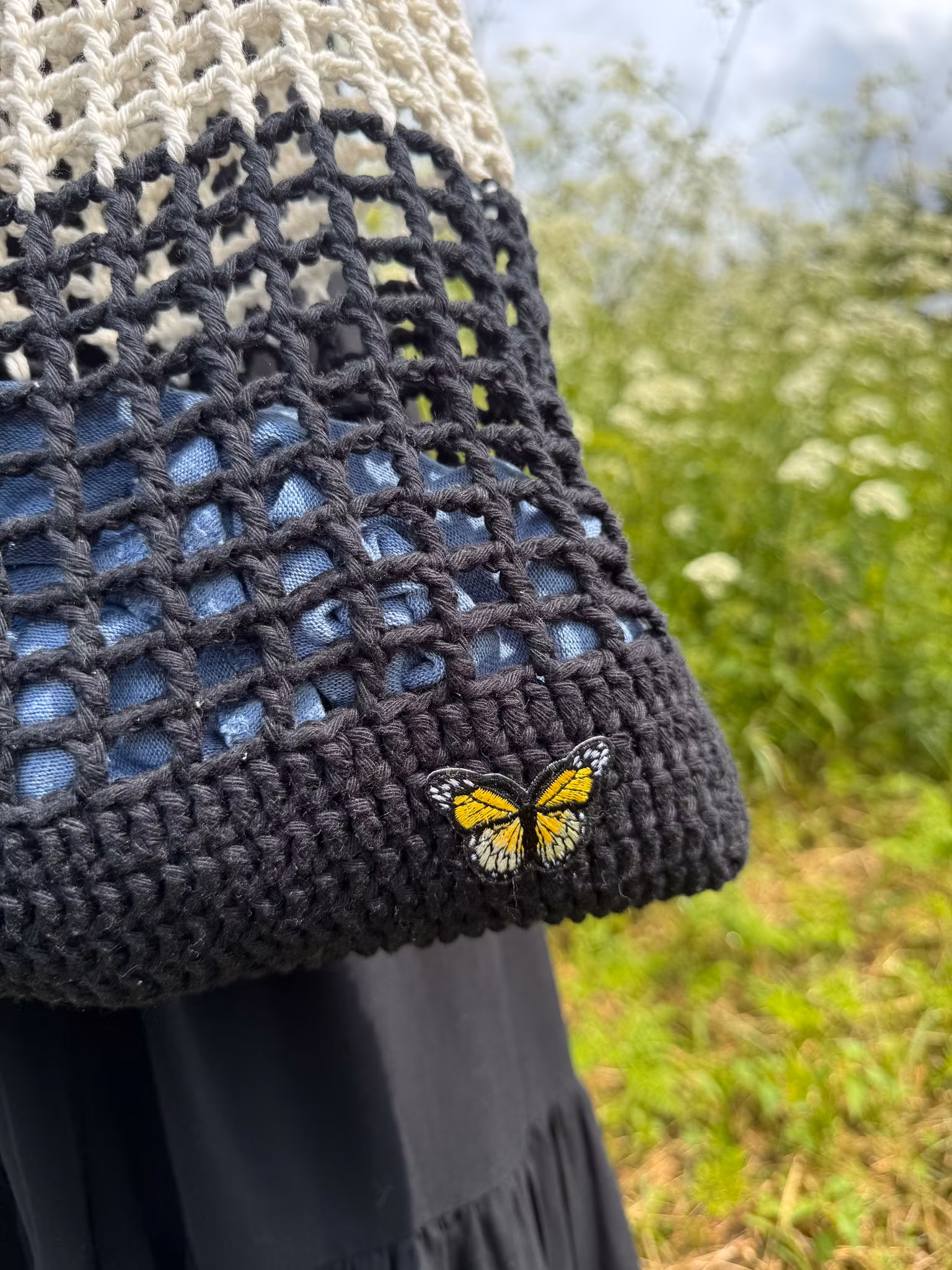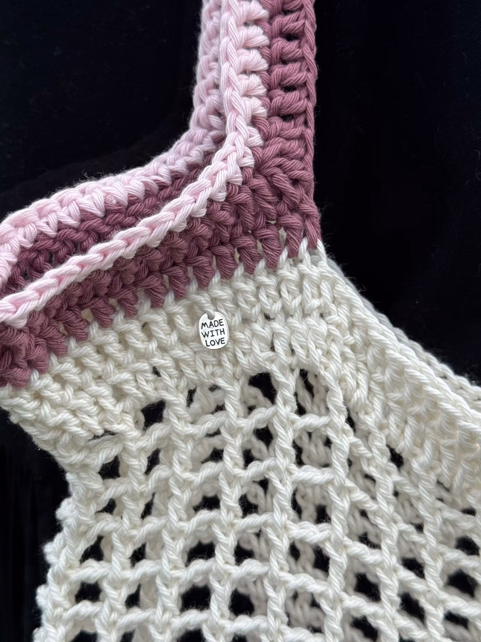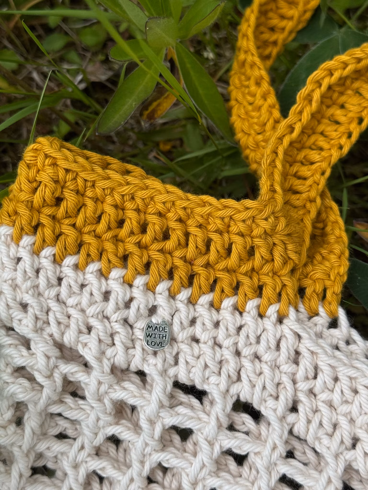 Virkad kasse/väska i 100% bomull ca 33x33cm utan axelrem